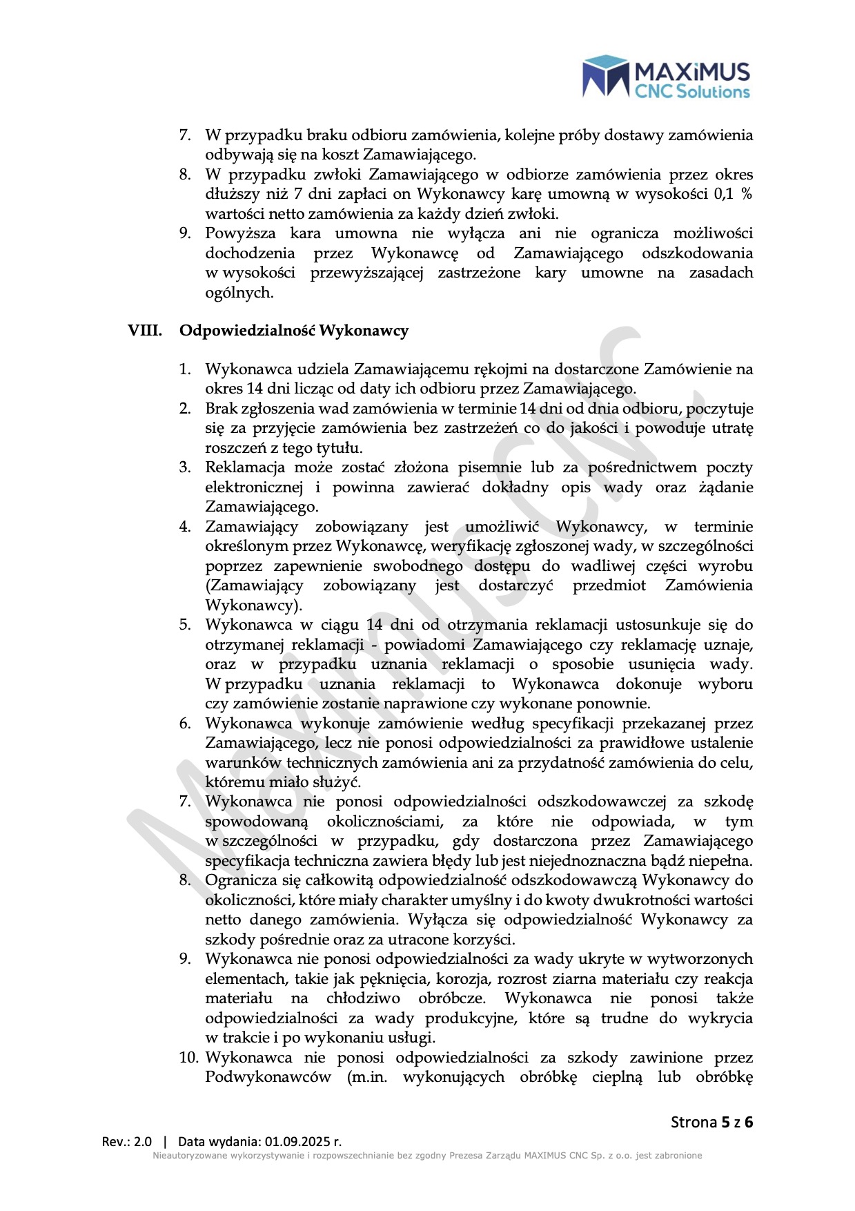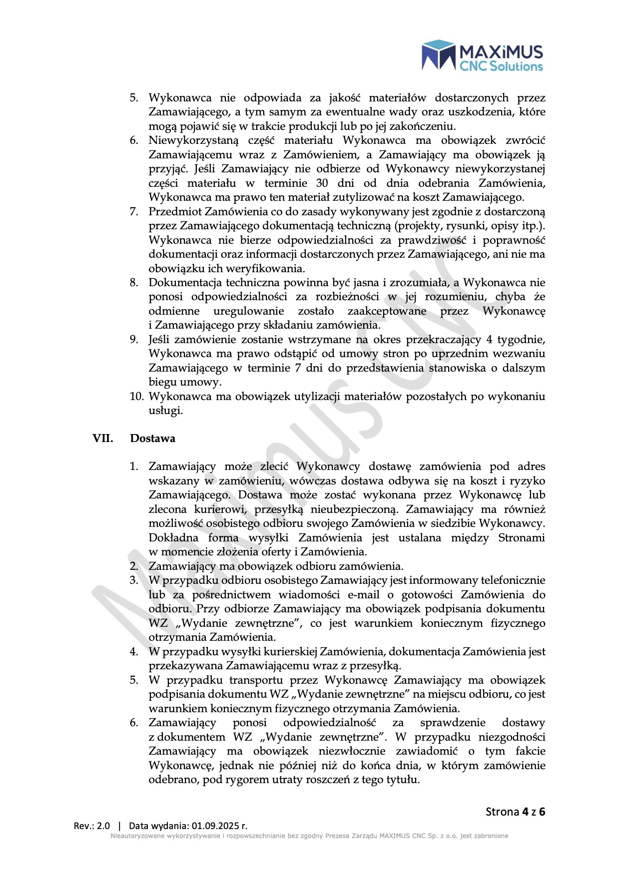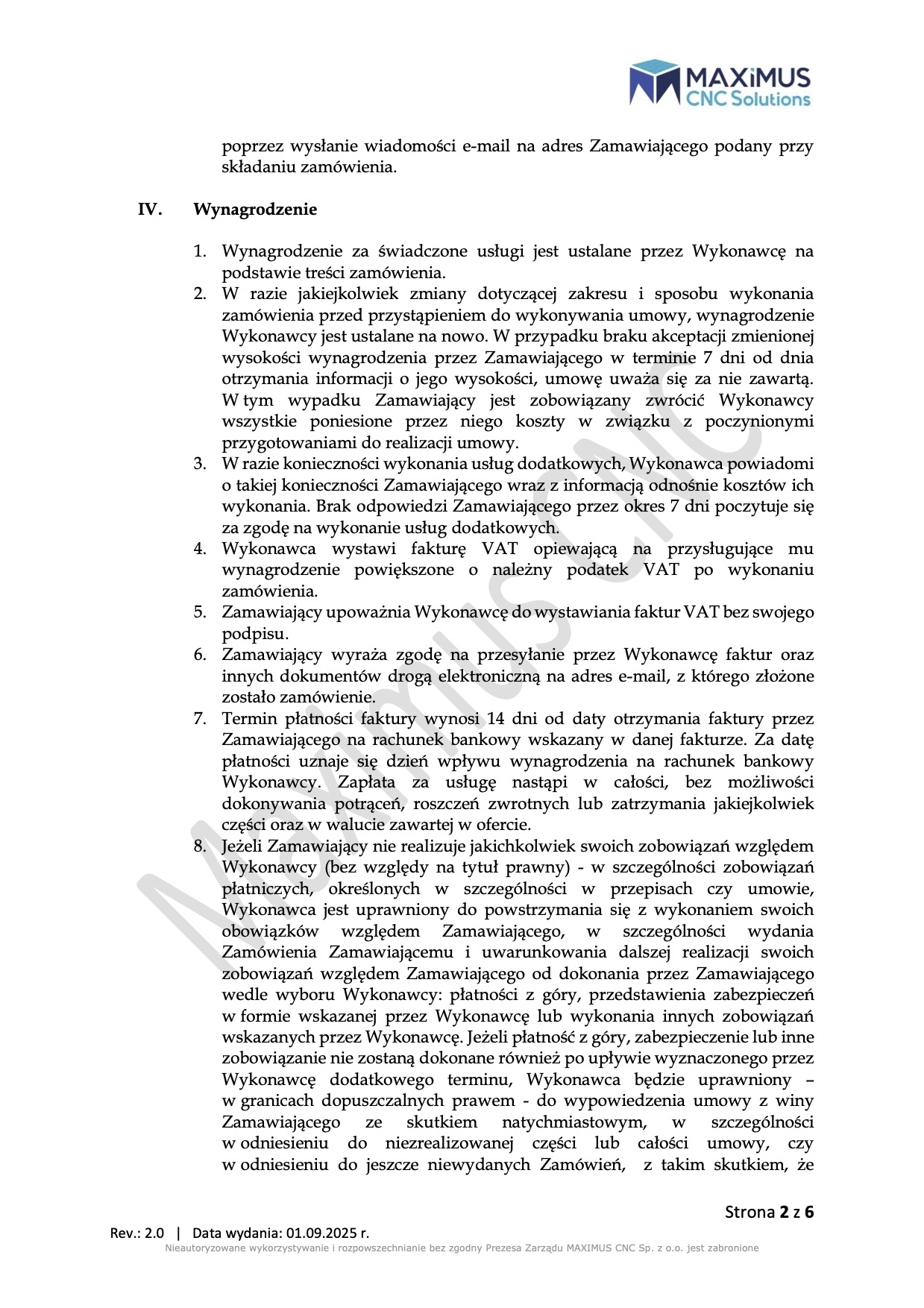Ogólne Warunki Świadczenia Usług przez MAXIMUS CNC